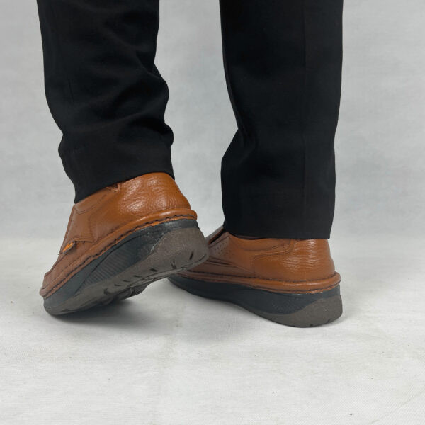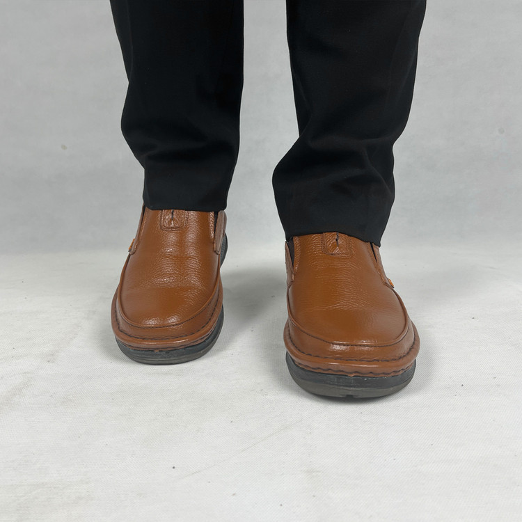 - چرم طبیعی اعلا: از بهترین نوع چرم گاوی تهیه شده که نه تنها دوام بینظیری دارد، بلکه با گذشت زمان نرمتر و زیباتر میشود و به شکل پای شما درمیآید. رنگ عسلی خاص و گرم آن، استایلی کلاسیک و در عین حال بهروز به شما میبخشد.