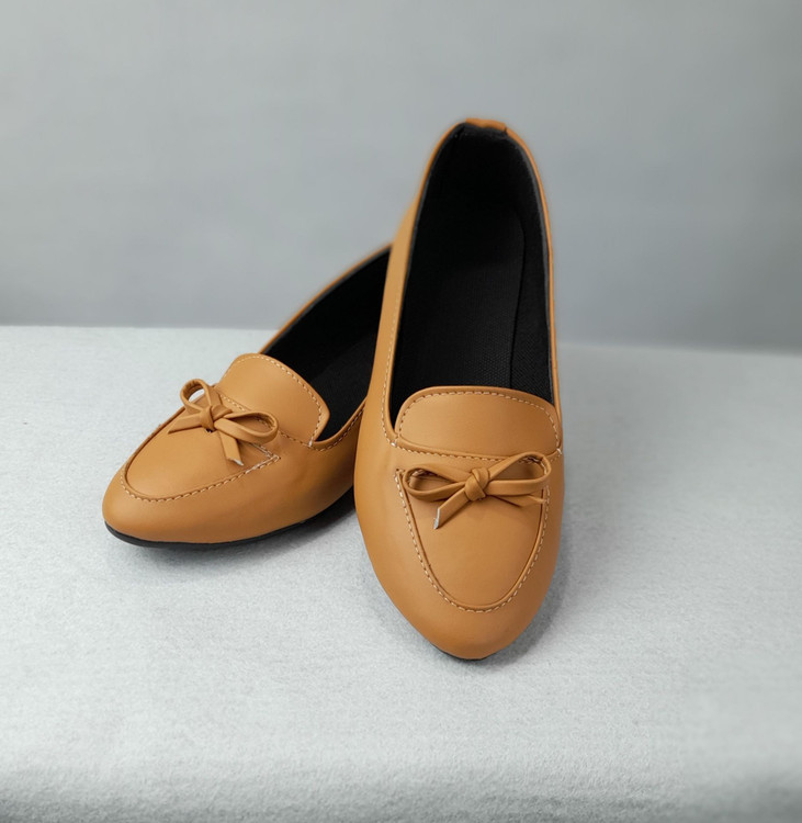 کالج زنانه ساده رنگ عسلی، نمای کامل کفش