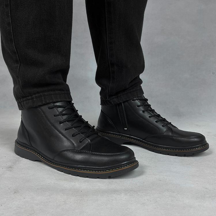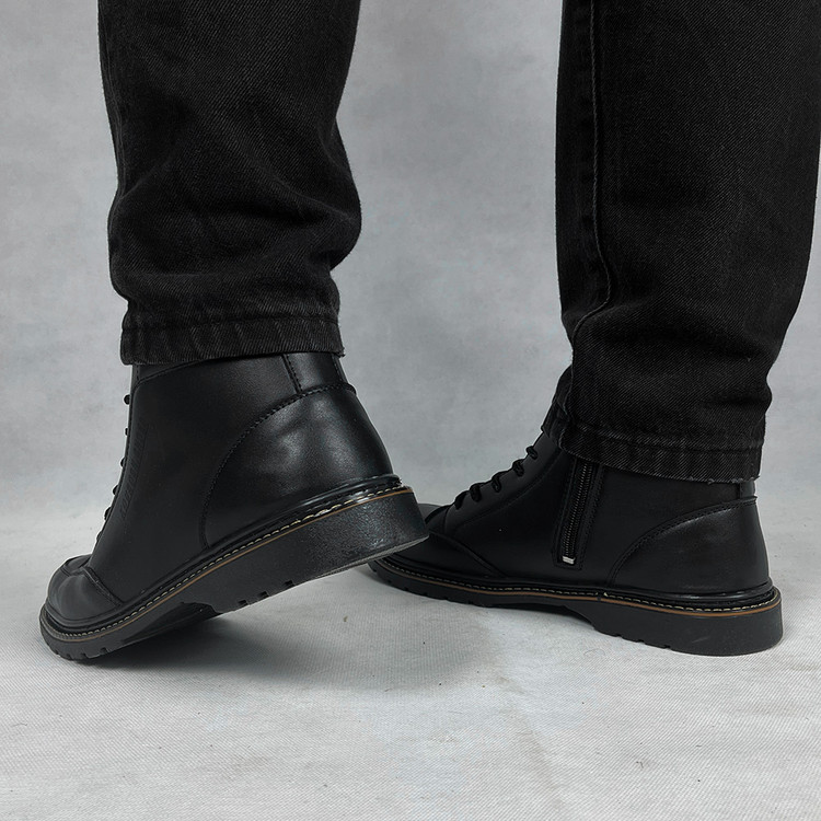 نیم بوت مردانه کوروش زیپی مشکی با رویه چرم صنعتی